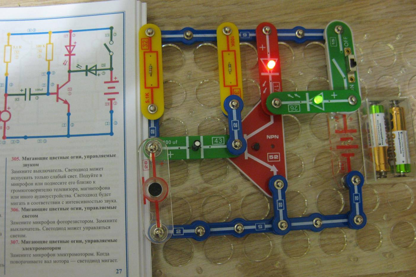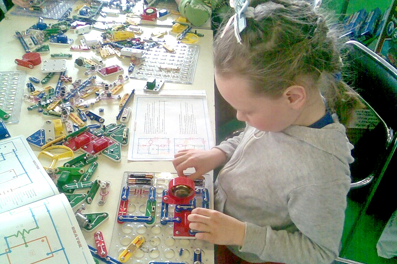 Основы электроники. Младшая группа проводит занятия с образовательной версией электронного конструктора знаток позволяющей ребенку познакомится с основами электроники. Занятия проходят в форме игры тесно соединяющей знания о физическом мире, удовольствие и практическую полезность. Собирая те или иные электрические цепи, можно отдыхая, познакомиться с удивительным миром электроники. Это не только игрушка, но и мощный обучающий инструмент, способный помочь в освоении школьной программы. Данный набор согласуются с существующей школьной программой и учебниками физики.